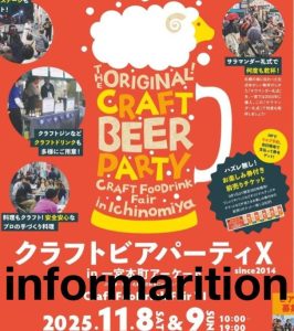 2025年11月8日・9日に開催される「クラフトビアパーティ X in 一宮本町アーケード ~Craft FooDrink Fair Ⅵ + BISHU FES.marcheⅢ」のご案内です。